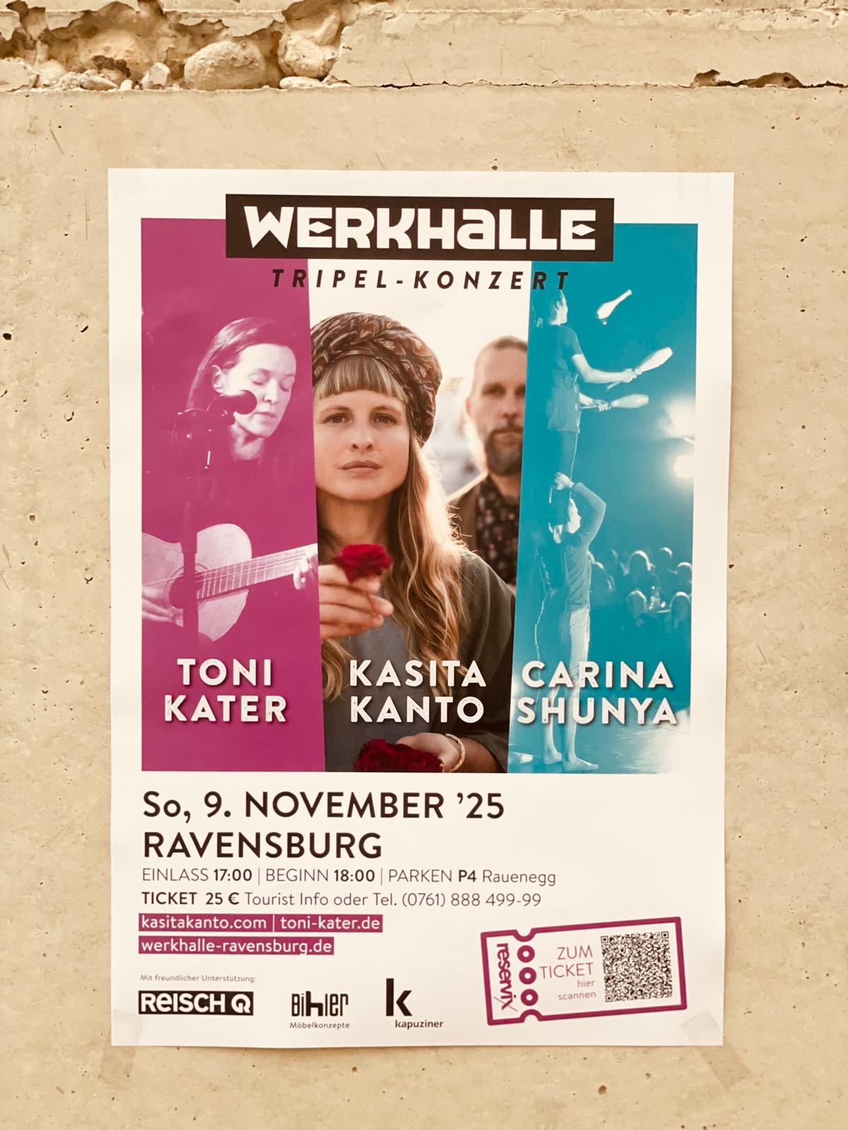 Konzert in der Werkhalle: Toni Kater, Kasita Kanto, Carina Shunya