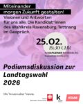Im Vorfeld der Landtagswahl 2026 laden wir herzlich zu einer Podiumsdiskussion mit den Kandidat*innen des Wahlkreises Ravensburg/Tettnang ein. Gemeinsam wollen wir über Visionen, politische Ziele und konkrete Antworten auf die Fragen sprechen, die unsere Gesellschaft heute und morgen bewegen. Die Veranstaltung bietet R , ... - 26Lichterfest: offene Werkstatt18:00 - 21:00